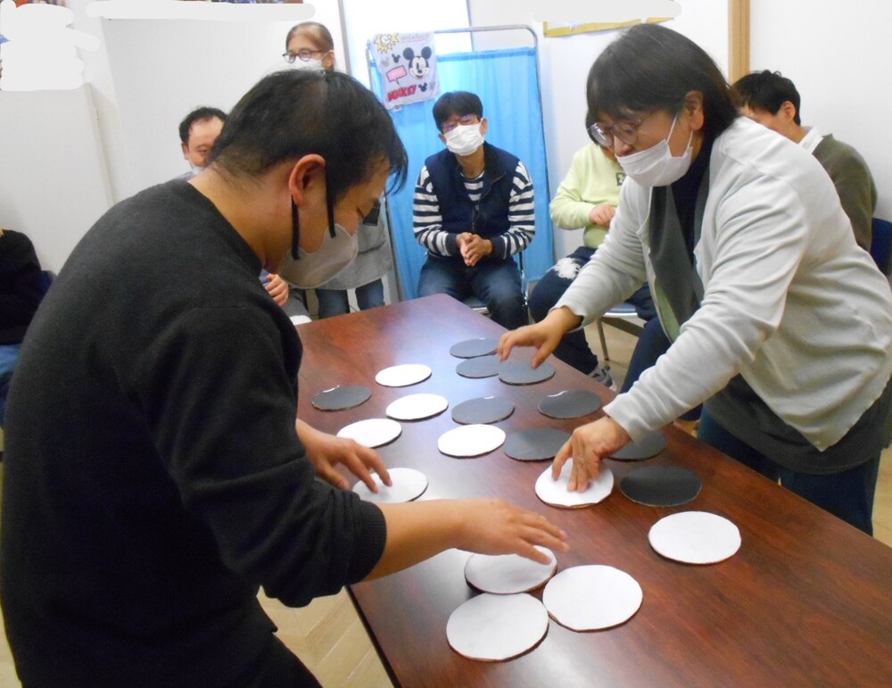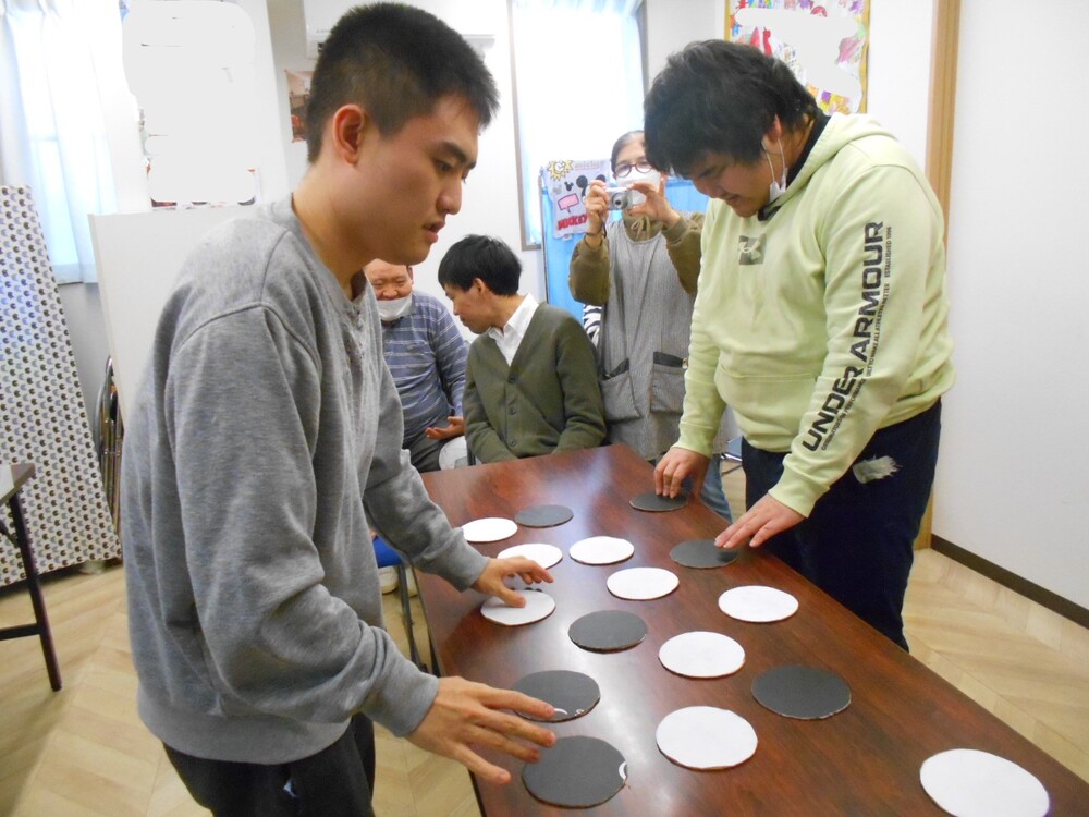 今年度も生介イベントも2月と3月になりました~。早いですね~!(^^)! 今回は、「復刻!しろくろ はっきりしてよ~」のゲームを復刻させました。お互い自分の色をひっくり返し多い方が勝利!ということで、時間内に素早く返す方や、ゆっくり一つ一つ丁寧に返す方など様々でしたね。復刻版は、途中、青おにがでてきて、返しているのを、さらに返していき、最後まで勝利が分からなかったです!
